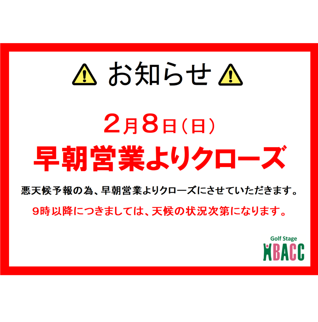 2月8日(日)営業案内