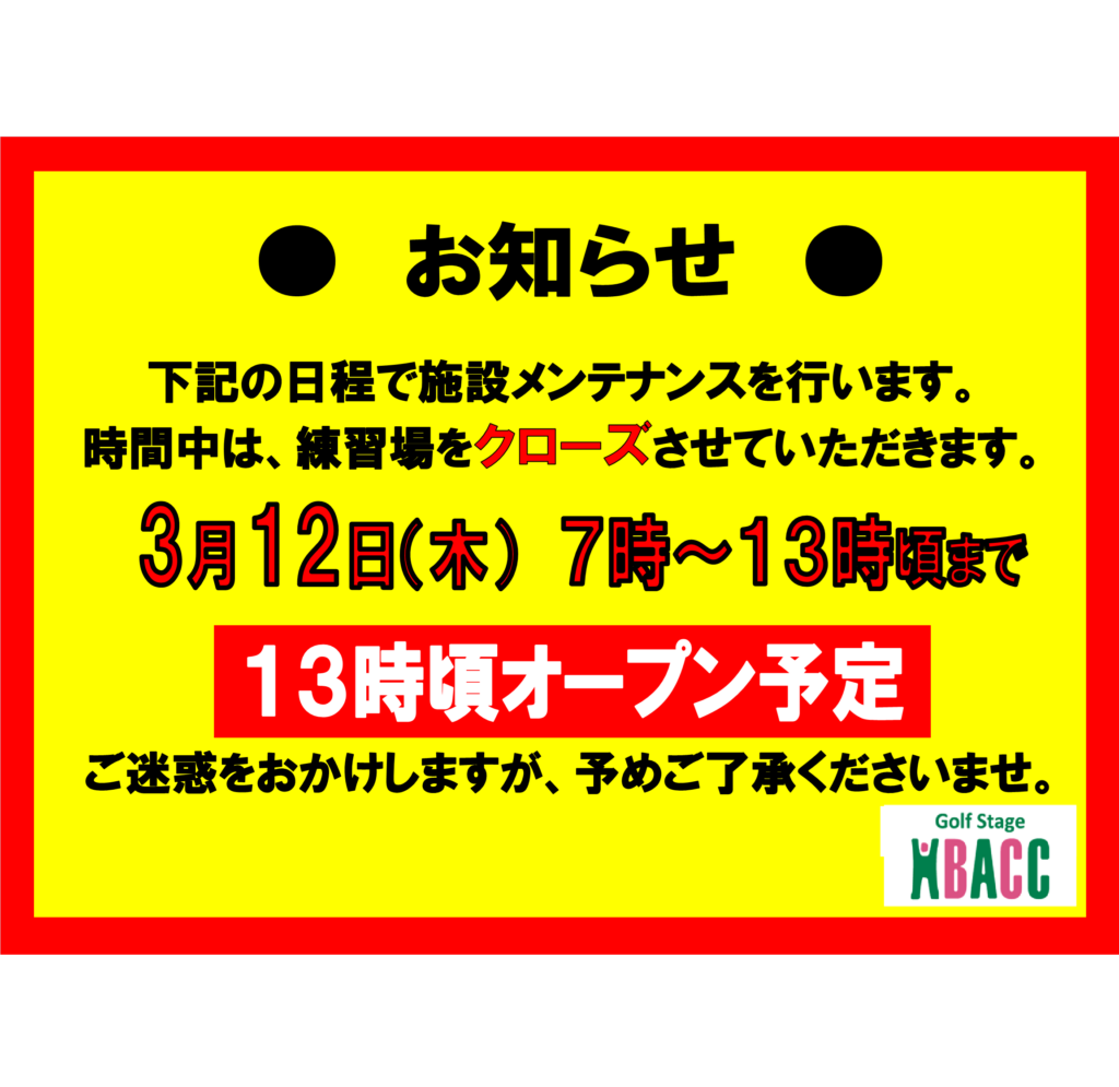 3月12日(木)は、メンテナンスの為 朝7時~13時頃までクローズにさせていただきます。